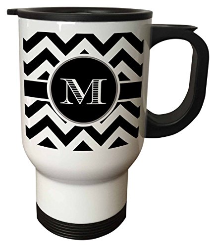 3dRose tm_222075_1 Black and White Chevron Monogram Initial M Travel Mug, 14 oz, White