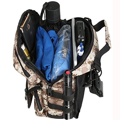 -. Feature : ① Bigger Size Than Others' - Upgraded to 12.6x7.9x4.7 inch (H x W x D) with total 10 different function pockets, keep your EDC accessories organized and easy to be found. / ② Versatile 3 Ways Carrying Everyday Bag - Shoulder bag, rover sling pack (chest-back, left-right sling) and hand carry. / ③ Functions - Suitable for everyday carry, working, hiking, trekking, travelling, day trips, camping, walking, cycling, hunting, fishing, outdoor sports, military tactical use, diaper bag, gift idea and more. / ④ Humanization Designs - a, Wide shoulder strap released the pressure on shoulder ; b, MOLLE external expansion system, designed to be used in combination with equipment by 4 FREE CARABINER CLIPs (that were putted in the front zip pocket); c, Added a laptop divider in the main compartment, can fit a 9.7" iPad in; d, 1 x snap closure concealed pocket on the back panel allows to conceal important things with easy access and draw. / ⑤ Quality Made- 600 dense polyester fabric, solid stitching, reinforced with bar tacking, equipped with premium quality zippers, no worry about zipper stuck, built for last long.
