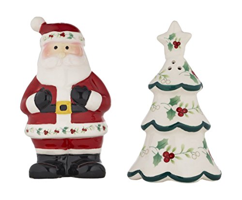 Pfaltzgraff 5187958 Winterberry Tree/Santa Salt and Pepper Shaker Dinnerware Set, 4.25", White