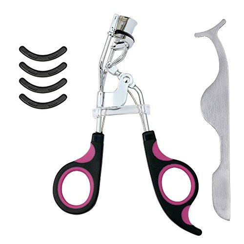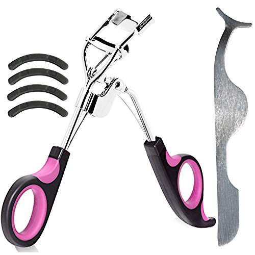 Professional Eyelash Curler with 4 Pack Soft Silicone Refill Pads,Long-lasting,Natural-looking,Curls Without Pinching or Pulling,Plus Free False Eyelashes...