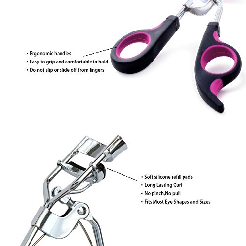 Ergonomic handles:This beauty eyelash curler has a comfortable ergonomic scissor handles,design with black sturdy plastic outer and soft silicone pink inner section,which make it easy to grip and comfortable to hold,do not slip or slide off from fingers.There is a plastic clip to fasten the handles,make it compact and convenient for storage and carrying.