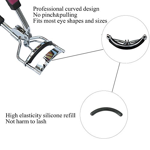 No Pinch&Pulling&Fits Most Eye Shapes and Sizes:Professional curved design will make it easier to get close to your lash line without having to maneuver the curler at odd angles and soft silicone pads can prevent pinch your outer lashes or pulling of your eyelashes. The best eyelash curler that is curved to the shape of your eye.This eyelash curler has a special curved design that fits for most eye shapes and almond shaped and deep set eye,which make your eyelashes goes graceful upward sweep.
