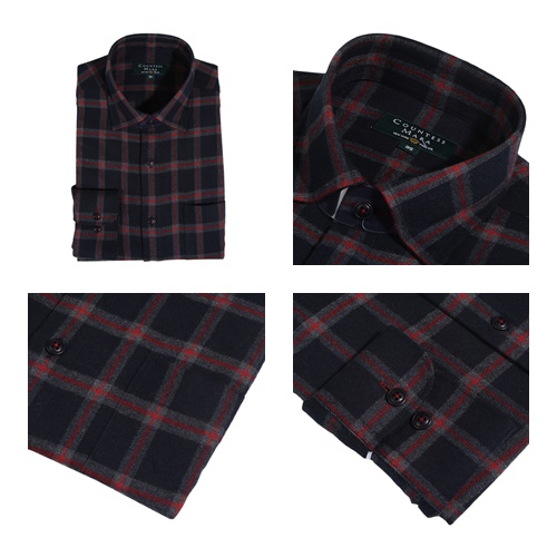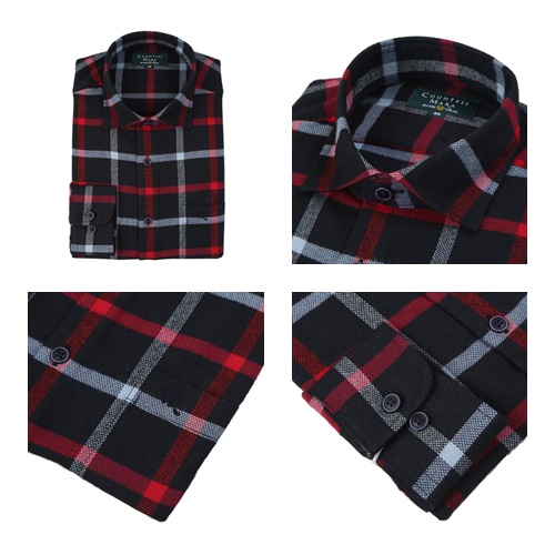 상품설명: 붉은 체크와 스냅카라 형태의 캐주얼 스타일 기모남방으로