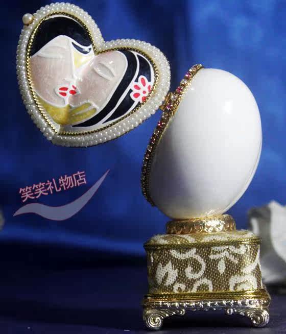 Egg carving surface they seem Jintai blue craft, is a man and a woman kissing pattern