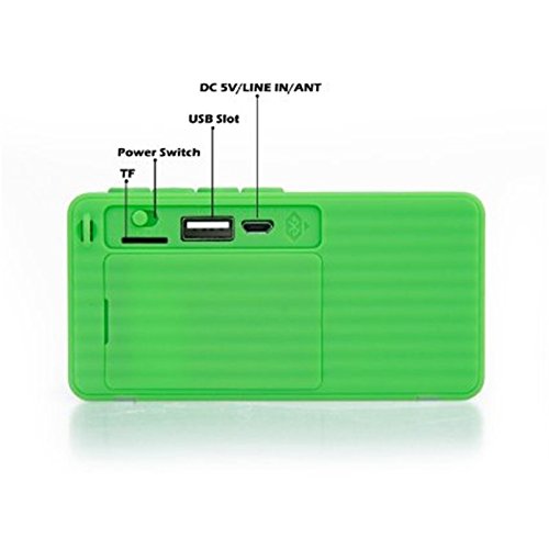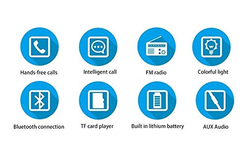 Feature : Support Bluetooth/Line in Audio connection, FM radio, TF card, Hards-free calling, Built-in mic / Built-in Rechargeable and Detachable li-ion Battery / Mode key(switch to bluetooth/USB/TF card/FM radio/Line in Audio) / Last song/turn down volume when press long.Next song/turn up volume when press long / Make a call in phone, the pause/play press twice to switch the call to speaker. Press once to answer a call. Press long to cancel pairing under Bluetooth mode. Press short to search station under FM radio mode.
