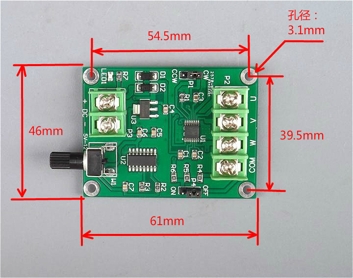 The driver board can drive hard brushless motor, brushless motor drive and other miniature 3-wire or 4-wire brushless motors without Hall