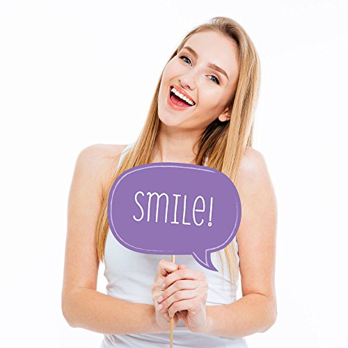 HIGH-QUALITY PARTY SUPPLIES: Purple Party photo booth props are professionally printed on thick cardstock paper. They will arrive cut out and ready to assemble with the included wooden dowel sticks and adhesives.