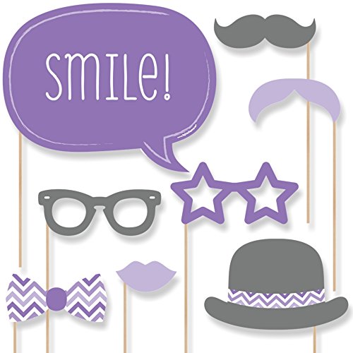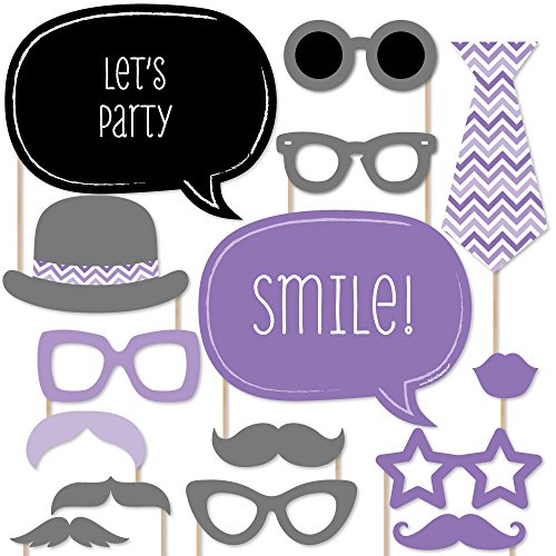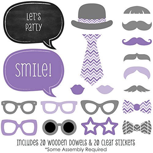 20-Piece Purple Chevron Stripes Photo Booth Props Kit INCLUDES 20 Chevron Purple photo booth props, 20 wooden dowel sticks and adhesives for assembly. EASY ASSEMBLY: Simply attach the printed DIY photo booth props to the wooden dowels with included adhesive and reinforcing stickers.
