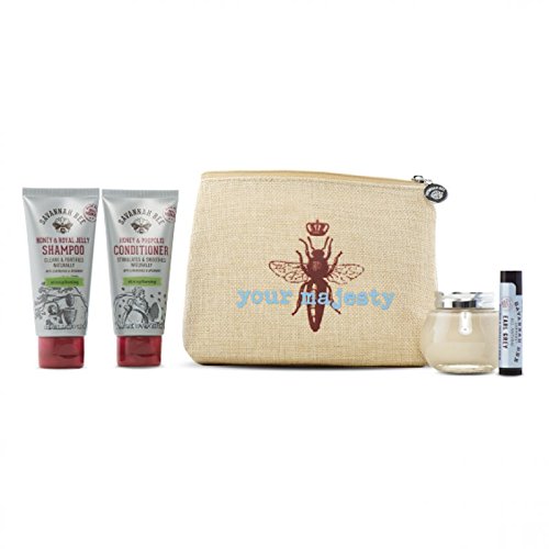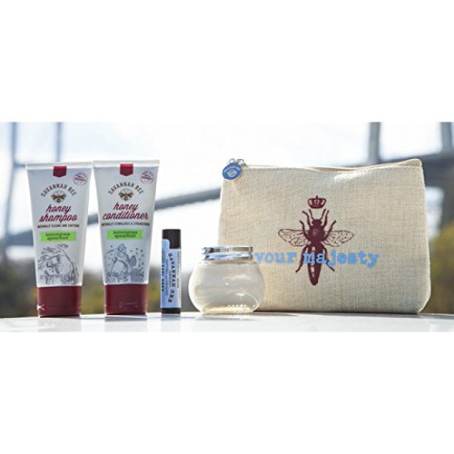 The Savannah Bee Company "Her Majesty" Travel Kit is perfect for queens on the go. Each kit includes a 1.7-ounce Honey and Royal Jelly Shampoo, a 1.7-ounce Honey and Propolis Conditioner, a 1.65-ounce mini Royal Jelly Body Butter and an all-natural Earl G