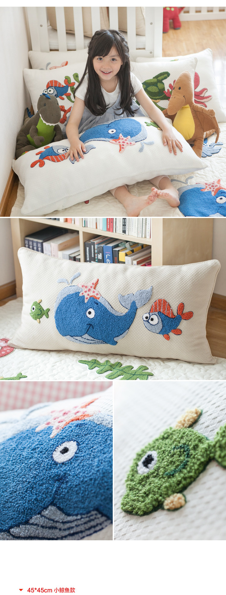 可爱卡通床头大靠垫 香芋谷色鲁绣刺绣抱枕套 儿童创意时尚棉靠枕