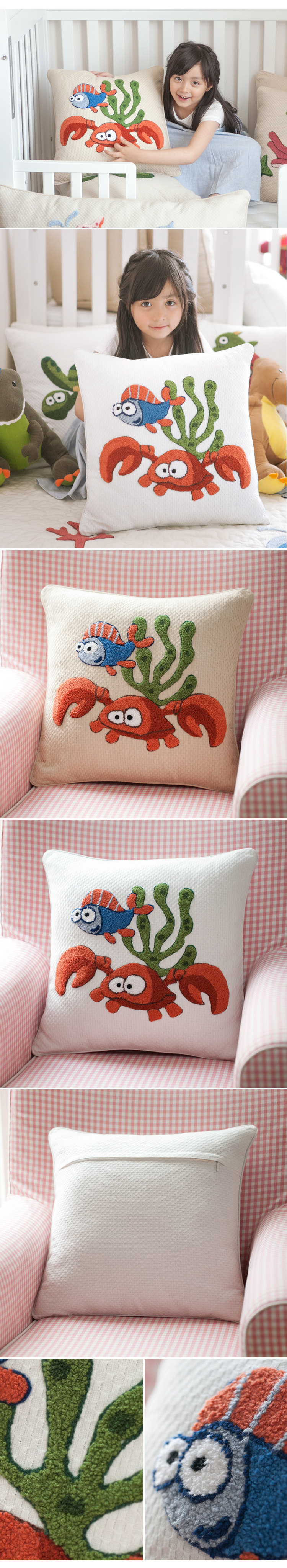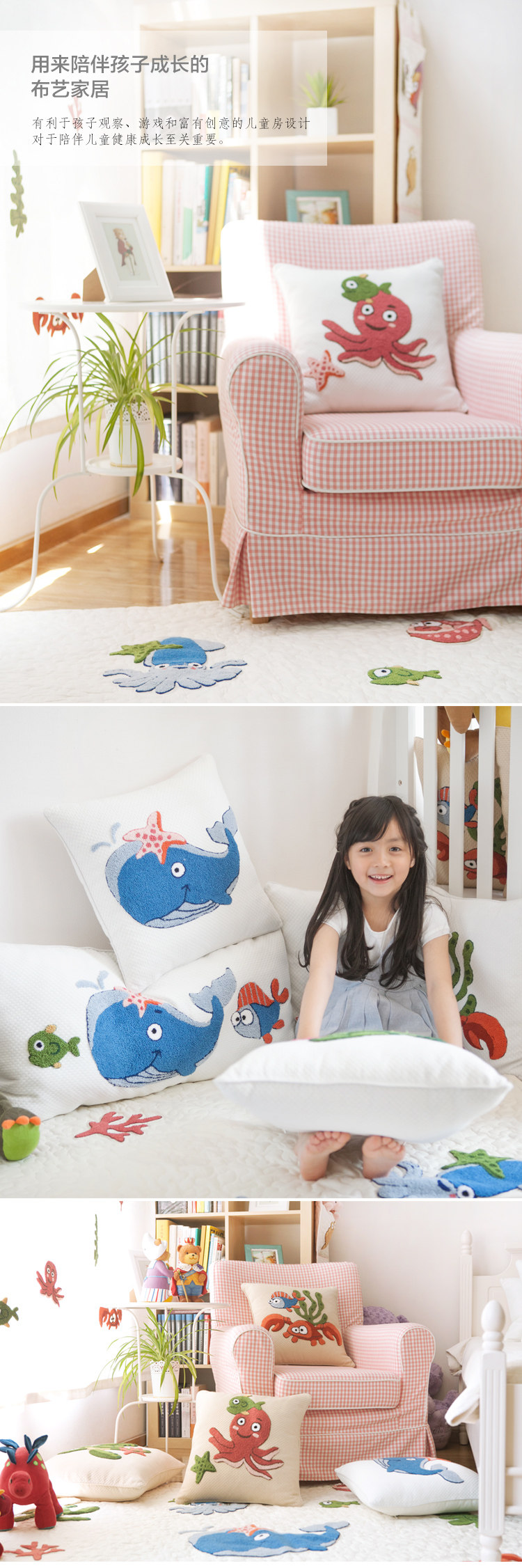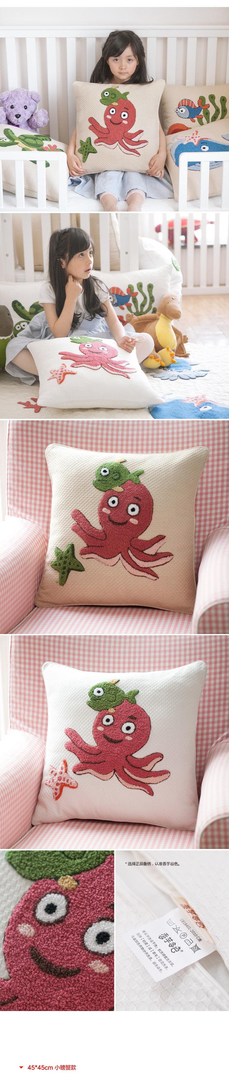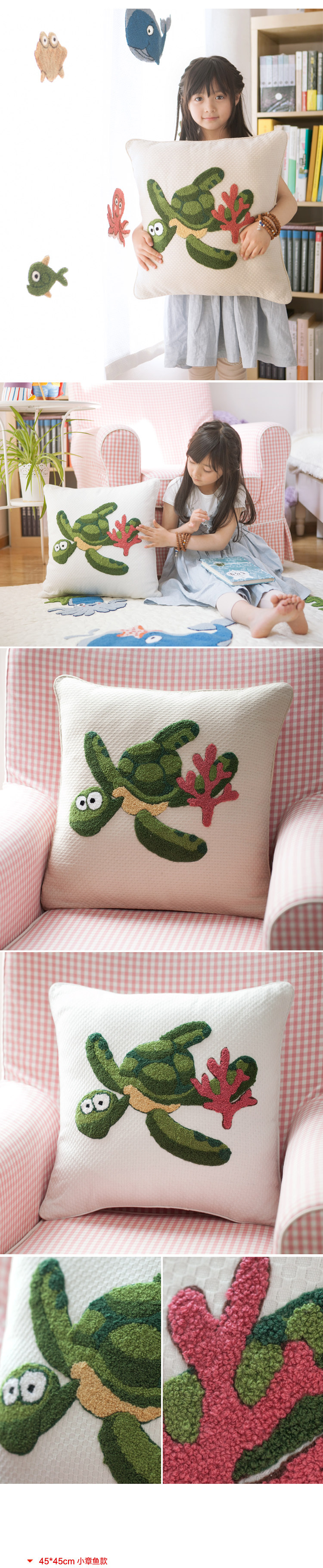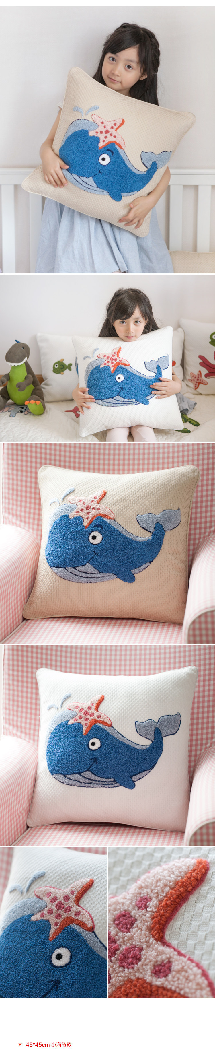 稚趣海洋&抱枕套 45cm*45cm 牛奶白/奶茶色 90%棉+10%聚酯纤维 手工毛线刺绣