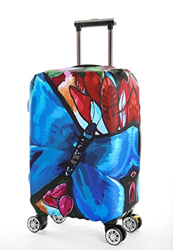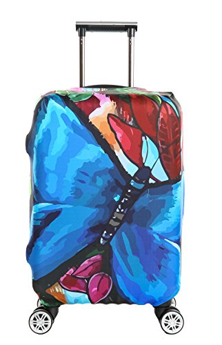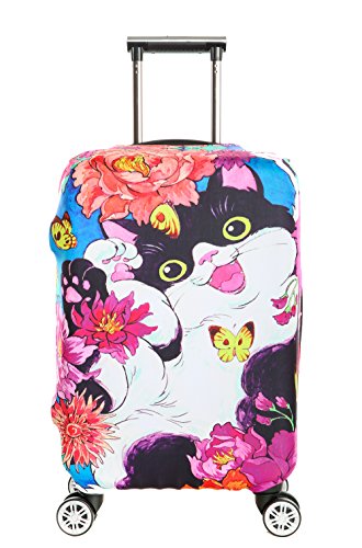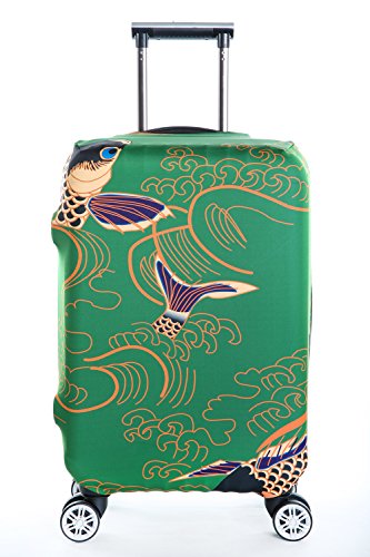 - This luggage cover fits the standard-sized check-in suitcase very snug as it stretches like spandex. It has an opening on the top and the side for handles. The bottom zips together between the wheels. - It does fit perfectly and nicely , the material of the suitcase cover is very stretchy and durable - The suitcase cover is really nice because it is made of a thick, stretchy but soft material, with a beautiful print.