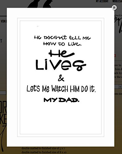 -. Title : Von.G Art: Original Saying/Quote "He Doesn't Tell Me How To Live. He Lives & Lets Me Watch Him Do It. MY DAD." Black & White Double-Matted Sharpie Drawing Artwork (5x7)