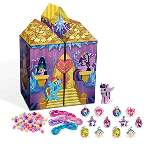 Make and store your jewelry in this light-up jewelry box! the castle jewelry box includes LED lights, storage drawer, 2 jewelry hooks, and 1 mini Twilight sparkle pony figure to display. Make your own bracelets and necklaces with 300 colorful plastic beads and 12 pony charms. Includes light-up jewelry box, 1 mini Twilight sparkle figure, 300 beads, 12 charms, elastic cord. Batteries included.Feature
