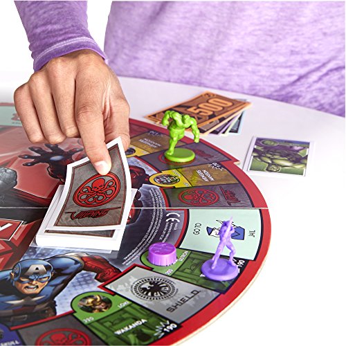 - Feature : Fast-Trading property game has an avengers twist / S.H.I.E.L.D. And villains cards function like community chest and chance cards / Play as one of the avengers / Save locations instead of buying them and collect power-ups instead of cash / The avenger with the most power when all locations have been saved wins