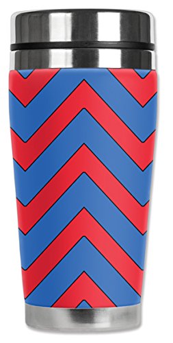 Mugzie 812-MAX "Blue & Red Chevron" Stainless Steel Travel Mug with Insulated Wetsuit Cover, 20 oz, Black