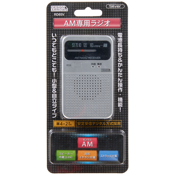 ●ヤザワ RD8SV AM専用ポケットラジオ シルバー
