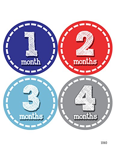 -. Binding : Baby Product -. Brand : Months In Motion -. Color : Blue -. Department : Baby-boys -. EAN : 0760194480391 -. Feature : Just peel, stick, and take a photo to document your baby's first year! / Makes a wonderful shower gift! / The perfect baby photo prop! / P.R.Inted on white matte sticker so no glare in photos / Includes 12 precut stickers that are approximately 3.93 inch diameter -. IsAdultProduct : 0 -. Label : Months In Motion -. LegalDisclaimer : Stickers are to be used under adult supervision only. Do not leave stickers on baby unattended. -. Manufacturer : Months In Motion -. Model : 1040 -. MPN : 1040 -. PackageQuantity : 12 -. PartNumber : 1040 -. ProductGroup : Baby Product -. ProductTypeName : BABY_PRODUCT -. Publisher : Months In Motion -. Studio : Months In Motion -. Title : Months in Motion 1040 Monthly Baby Stickers Baby Boy Month 1-12 Milestone Sticker -. UPC : 760194480391