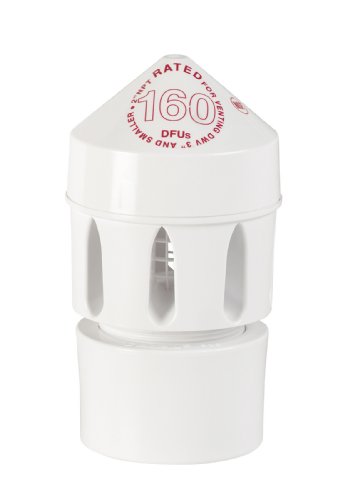 Oatey 39220 2-Inch by 3-Inch Sure-Vent Air Admittance Valve 160 DFU with 2-Inch by 3-Inch PVC Schedule 40 Adapter, White