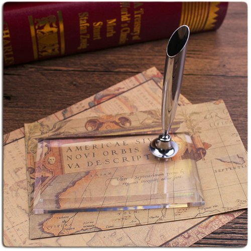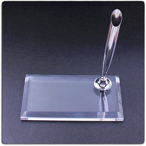 Chris-Wang Desktop Pen Holders Feather Dip Lik Penholder Signature Quill Stand Stationery Gift for Wedding Party, Rectangle Shape Acrylic Crystal Base