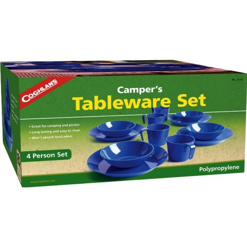 Studio : Coghlans Ltd Publisher : Coghlans Ltd Product Description Great for camping and picnics. Long lasting and easy to clean. Recyclable, inexpensive solution for outdoor camping tableware. Made from lightweight, flexible polypropylene material that is easy to pack, stack and carry. Color: Blue Made from polypropylene Dishwasher and microwave safe Great for camping and picnics Long lasting and easy to clean Plastic will not absorb food odors BPA Free Contains 4 each of the following: 9.75" Plates, 6.5" Bowls 12 OZ Cups. 0
