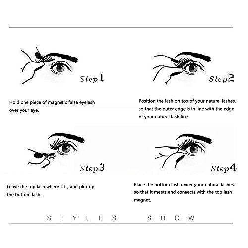 [Two lashes go on each eye which gives you a dramatic 3-D effect]-By putting one lash on top of your natural lash and then placing a bottom lash under your natural lash will allow for you to have a 3D effect by placing both lashes on top of each other.