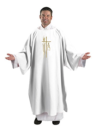 -. Feature : Alpha Omega Dalmatic New for this year Cambridge introduces the Alpha / Omega Dalmatic. / These Dalmatics are embroidered with the same designs as our popular Monastic Chasuble (JT386) detailing Cross / Wheat and Alpha & Omega symbols Matching understole is included. / Polyester with Embroidery - 48" L