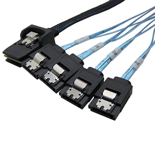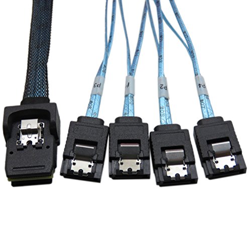 CableDeconn 3FT Internal SFF8087 Mini SAS 36pin Male W/ Latch To SATA 7Pin Female (X4) Forward Breakout Cable