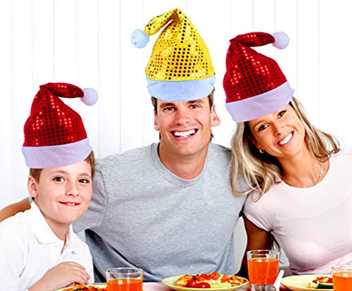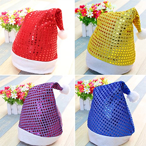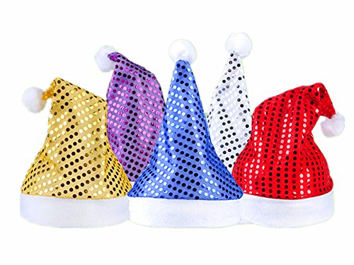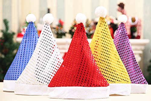 5pcs Christmas Santa Hat,Assorted Colors Shining Santa Claus' Cap Xmas Hat for Adults(Wide:11",Height:15") by Alimitopia