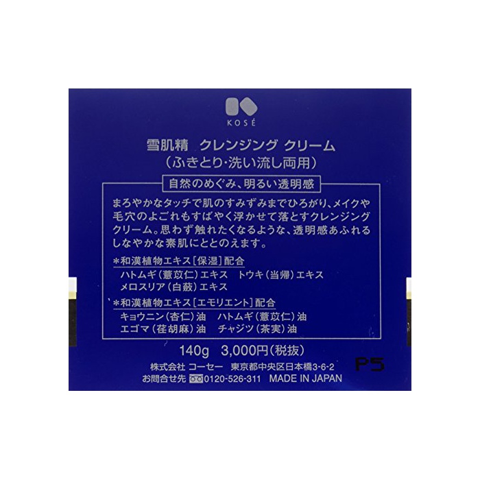 원본상품명: コ?セ? 雪肌精 クレンジングクリ?ム 140g