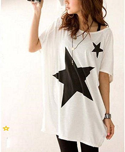 -. Title : ( Tiara ) ゆったり ビッグ Tシャツ ミニ ワンピ ゆる感 カジュアル 星柄 スター レディース カットソー おしゃれ モノトーン …