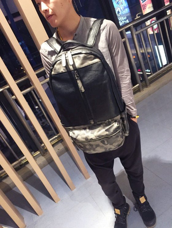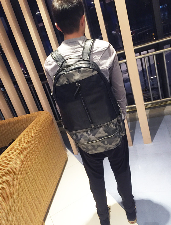新款男士韩版双肩包大容量旅行包潮流迷彩背包时尚休闲书包电脑包