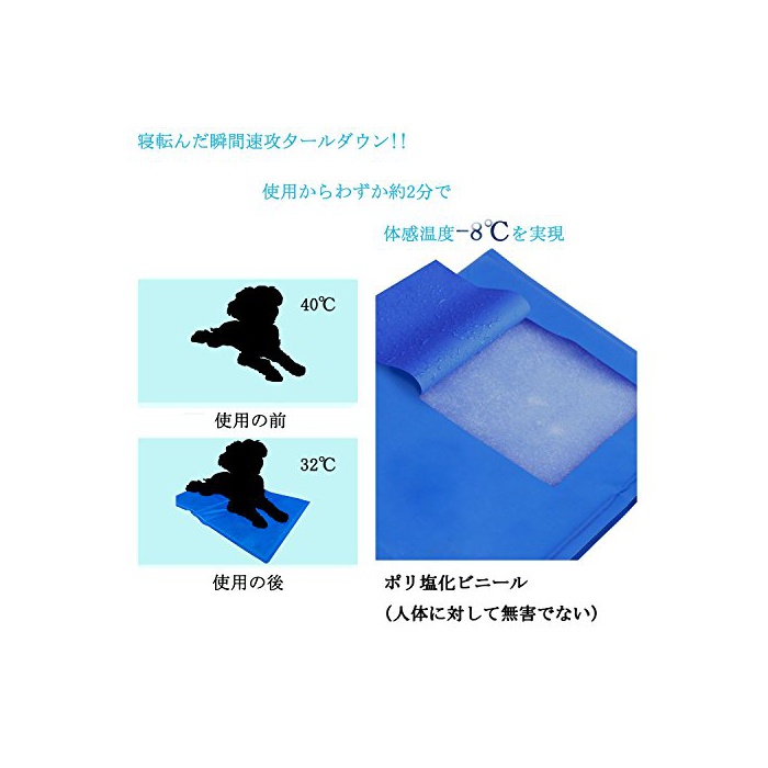 【전기요금 절약】:애견이나 애고양이의 열사병을 예방 모아 두게,많은 주인씨가 24시간 쿨러를 붙여 옵니다.그러나,전기요금이 예상 보다 상당히 듭니다.고객의 고민을 해소 할 수 있는 서늘 쿨 매트가 등장합니다.서늘 매트를 손을 대면 체온을 식힐 수 있습니다.애완동물의 베드나 케이지 위에 깔아 사용하면,애완동물에 시원하게 냉느낌을 받는 때문에,금년의 여름은 쿨러 없이 애완동물에 시원하게 보내게 합시다.