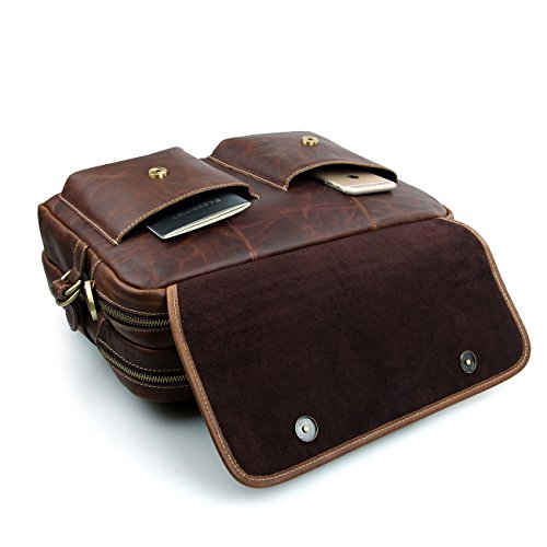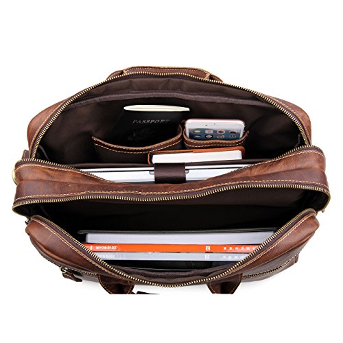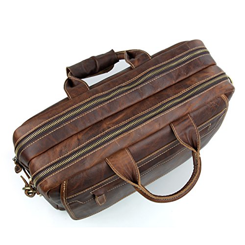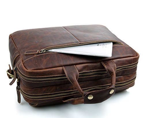 -. Feature : Made of Top Crazy-Horse Leather , Classic Design, Vintage style, High quality / Dimension:Length 15.7"/40cm * Width 5"/13cm * Height 12.6"/32cm, Handle approx. 5 inch., Net Weight:1.6KG / Laptop Padding inside fits 15.6 inch laptop ,Two front pockets, Interior pockets and Backside zipper pocket can easy to take your PAD,Cell Phone,Pen or Wallet and so on / Durable bag ,with Adjustable shoulder strap / Nice looking bag, Great gift for men, Take it as laptop Briefcase, Shoulder bag or Messenger bag