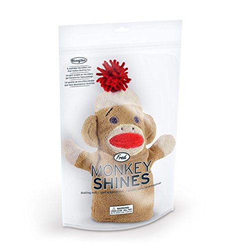 Studio : Fred and Friends Publisher : Fred and Friends Binding : Misc. Product Description Don't monkey around. Slip on a MONKEY SHINES microfiber mitt and get dusting. This dusting mitt is made of super static microfiber. The microfiber mitts are machine washable for easy cleaning. It's a product that combines fun and functionality in one. Each mitt comes in the shape of an adorable, traditional sock monkey. Enjoy a dust-free space with Fred and Friends. 0
