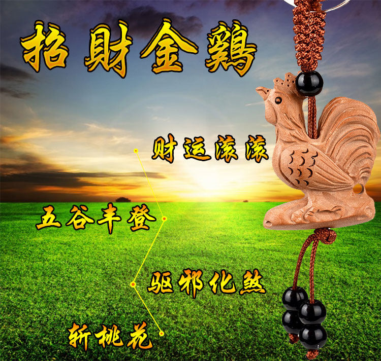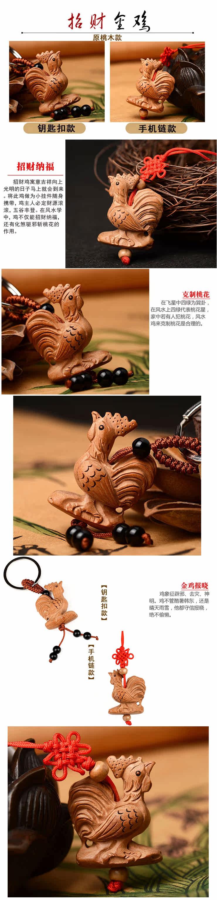 桃木公鸡钥匙扣挂件吊坠手机链木雕化婚外情旺姻缘