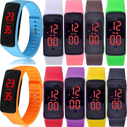 -. Feature : Package Included:10 Pack Led Watches 2016 Update Version / Additional RED LED function to show the time clearly in dark areas With its elegant and contemporary design, it is very popular,a perfect gift for friends, families, lover, coworkers or yourself / This watch is designed with stylish and exquisite appearance, Suitable for both women and men,Girls and Boys, perfect choice for your family life and best gift / Silicone strap design, it is soft and comfortable to wear, Whether in sports or at leisure