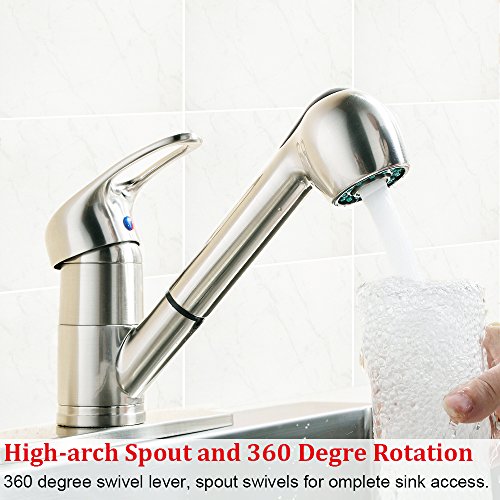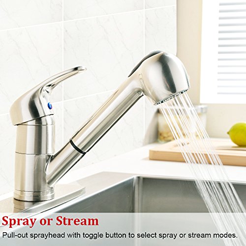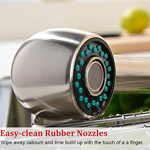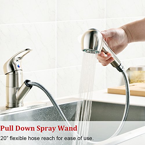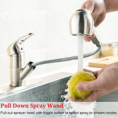 Single handle kitchen faucets with pull-down sprayer: Two convenient water flow models-spray or areated stream flow.