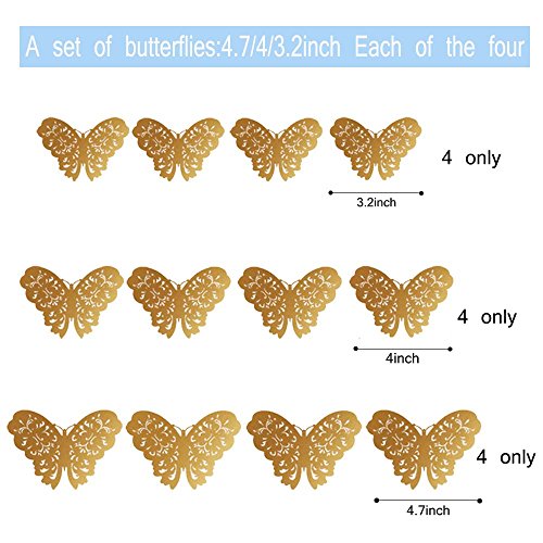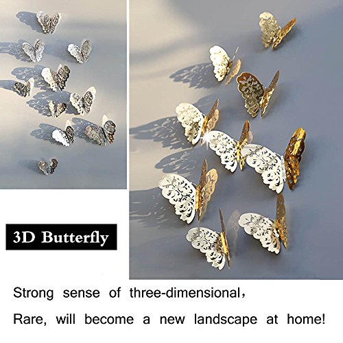 - soak off 3 d hollow out the butterfly wall stick metallic simple sense, use avirulent environmental protection material. 1 set of groups include: gold: 8MC* 3,10CM*3,12CM* 3, silver: 8CM*3,10CM*3,12CM* 3. Aureate and argent collocation outstanding individual character taste.
