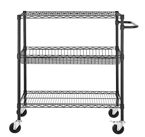 Excel ESC-361840P NSF Certified Heavy Duty Commercial Grade Wire Shelving Cart, 36 x 18 x 45", Black