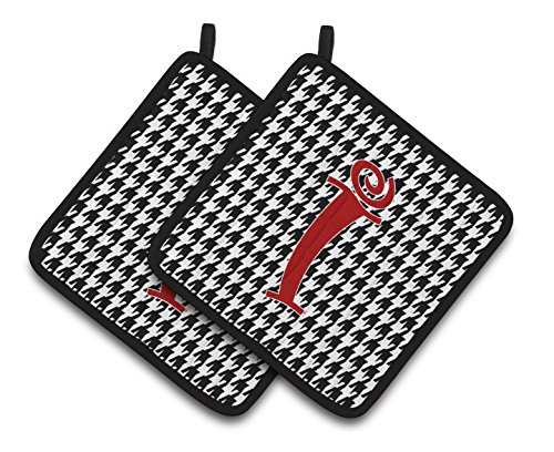 Caroline's Treasures Monogram Initial I Houndstooth black Pair of Pot Holders CJ1035-IPTHD, 7.5HX7.5W, Multicolor