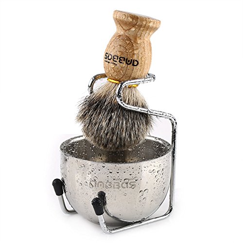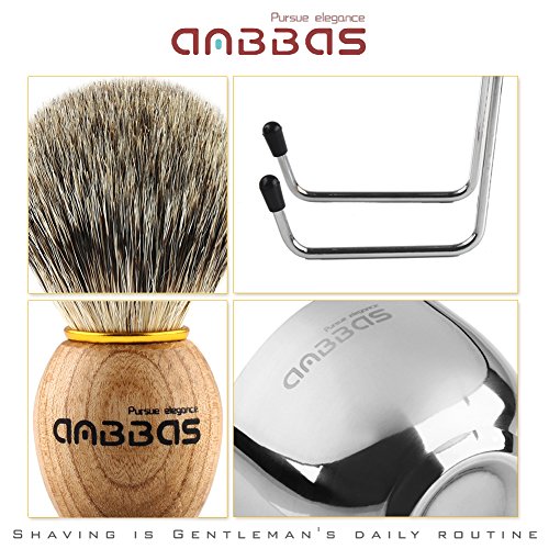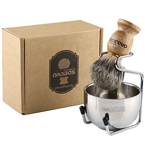 Shaving Set, 3in1 Pure Badger Hair Shaving Brush Natural Solid Wood Handle and Stainless Steel Shaving Stand with Shaving Bowl Dia 3.2" for Men Wet...