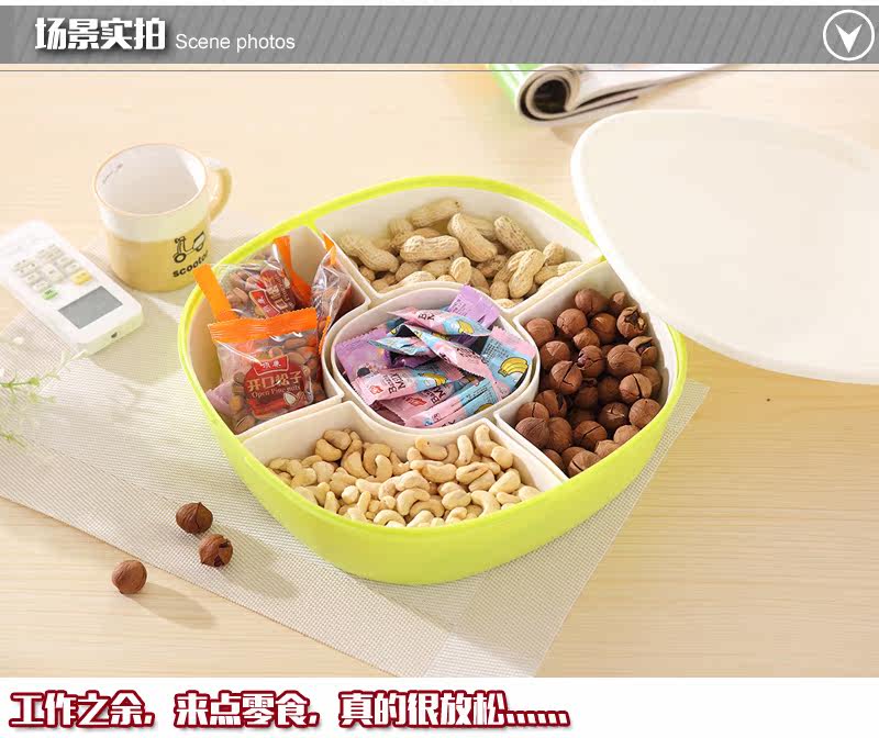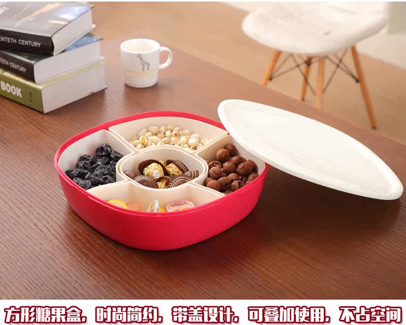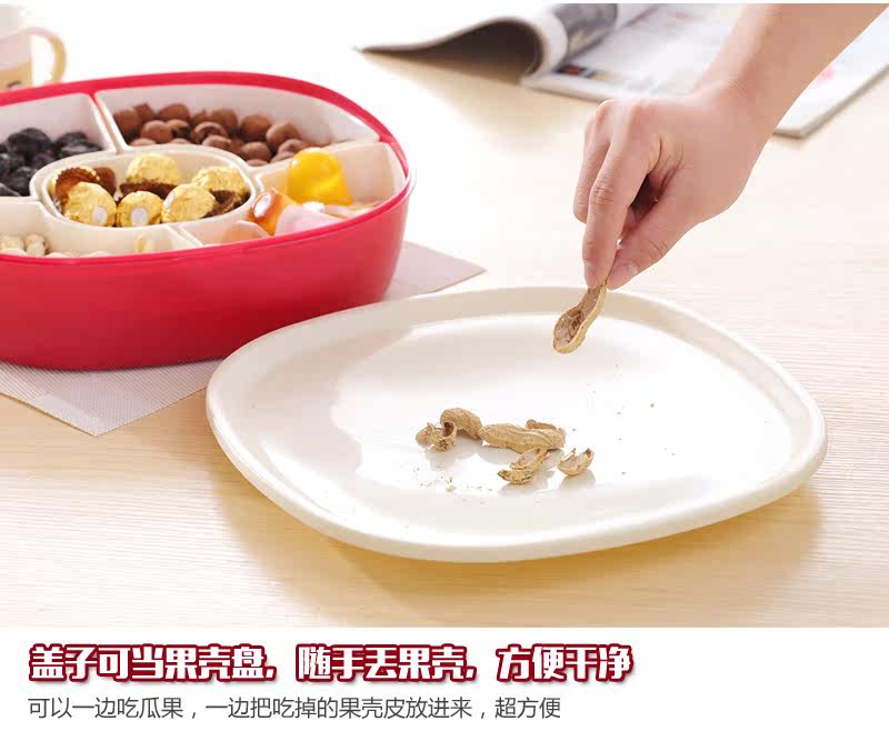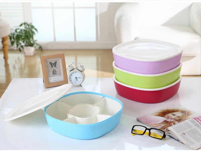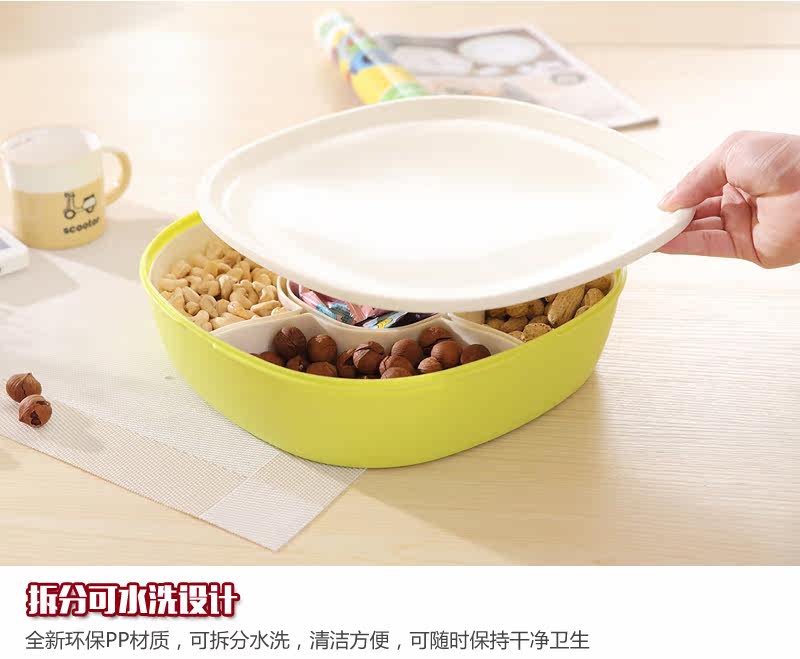 果盘创意时尚密封带盖糖果盒 分格塑料干果盘 干果盒瓜子盘