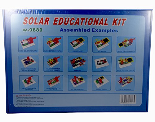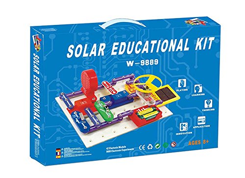 -. Binding : Toy -. Feature : Solar Educational Kit Electronic Building Blocks W-9889, educational Appliance Toys For Kids. / 9889 different circuits could be constructed. / Environment-friendly and high-tech. / Useful for learning and teaching electronics. / Instruction manual included. All the illustrations in the manual are very close simulations of real circuits, so they are easy to follow and set up. -. IsAdultProduct : 0 -. Label : Solar -. Manufacturer : Solar -. ProductGroup : Toy -. ProductTypeName : TOYS_AND_GAMES -. Publisher : Solar -. Studio : Solar -. Title : Solar Power Educational Kit - 42 Electronic Modules - 9889 Electronic experiments