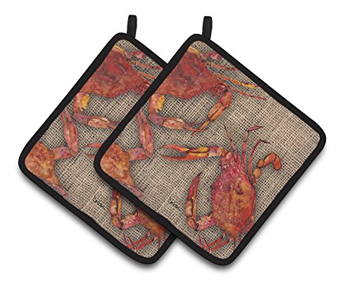 Caroline's Treasures Cooked Crabs On Faux Burlap Pair of Pot Holders 8742PTHD, 7.5HX7.5W, Multicolor
