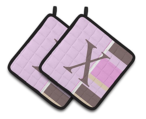 Caroline's Treasures Letter x Initial Monogram - Pink Stripes Pair of Pot Holders CJ1005-XPTHD, 7.5HX7.5W, Multicolor