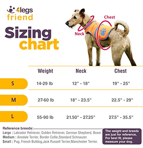 Studio : 4legs Friend Publisher : 4legs Friend Binding : Misc. Product Description Premium Waterproof Reflective Dog Safety Vest - Safely Walk, Run or any Other Activity with Your 4 legged Friend! Here are 6 reasons why you're going to LOVE your Brand New Dog Vest: 1. Top-rated Vest by dog owners. Strong and durable materials that will last very long. 2. Yellow ultra-high visible color with reflective prints. Can easily be seen by cars in the dark from 500 feet away. 3. Small, medium or large dog? No problem, we have multiple sizes for perfect fit on most dogs. 4. Ergonomic, adjustable and comfortable soft touch fabric for your dog to wear, he won't even feel that he is using it. 5. 100% weatherproof, can be used in rain, snow or other bad weather. Easy to clean and keep like new. 6. You are backed with our 30 days Money Back Guarantee. No questions asked. Buy now RISK-FREE. You can easily measure and pick the right size for your dog: X-Small size - will be available soon Small size - 18-29 lb dogs. Base of Neck Diameter 12" - 18", Chest Diameter 19" - 25" Medium size - 33-60 lb dogs. Base of Neck Diameter 18.00" - 23.5", Chest Diameter 22.5" - 29" Large size - 60-100 lb dogs. Base of Neck Diameter 21.50" - 27.25", Chest Diameter 27.5" - 35.5"X-Large size - will be available soon Inside Package: 1 x Dog Reflective Safety Vest with your chosen size. We Guarantee you: Premium Quality-Checked Products Friendly and Fast Customer Support Safe Shipping with Tracking Number 100% Money Back Guarantee. Why take another unsafe walk with your best friend? Click ADD TO CART now to get this affordable Brand New Dog Vest rushed to your door today! 0