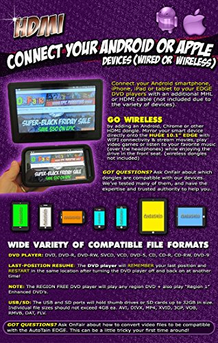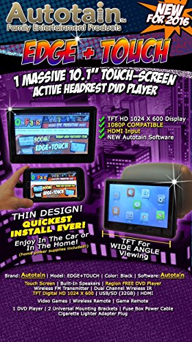 [SINGLE] Autotain EDGE 10.1 inch [TOUCH SCREEN] Slim Active Headrest Monitor DVD Player + HDMI, + 1080P, + Home Power Cable