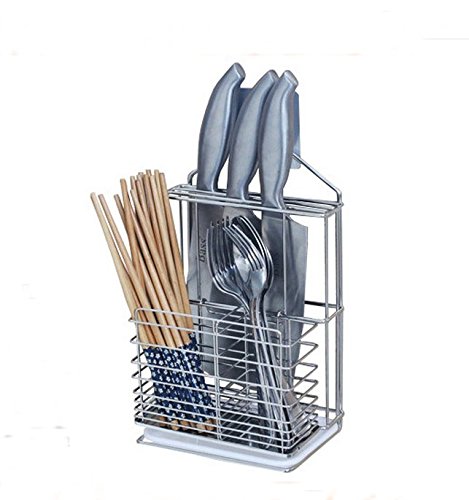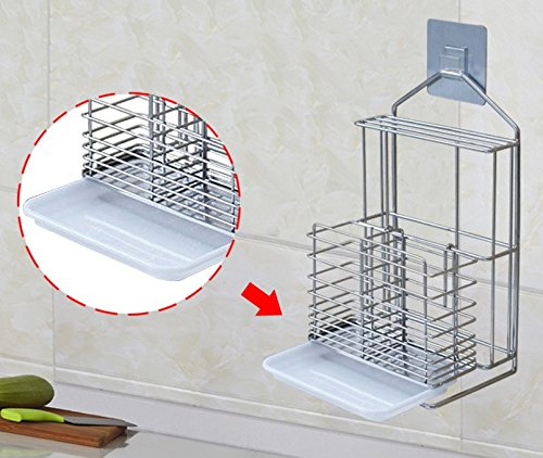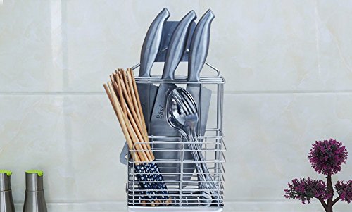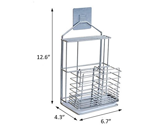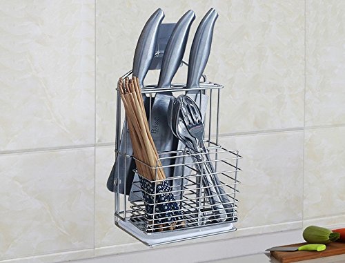 Self Adhesive Stainless Steel Hanging 2 Compartments Mesh Utensil Drying Rack/ Knife/ Chopsticks/Spoon/Fork/Knife Drainer Basket Flatware Storage Drainer (Square)