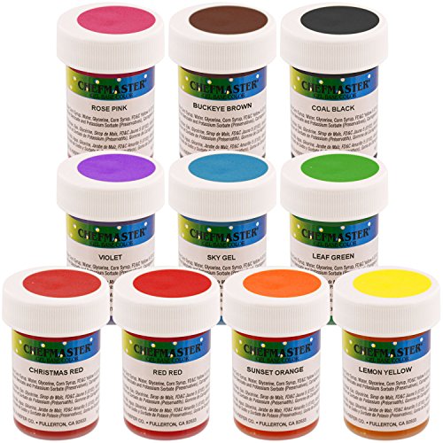 Chefmaster by US Cake Supply 1-Ounce Gel Base Food Color Senior Kit - 10 Colors